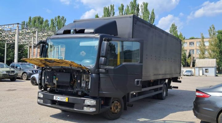 Ось вона! Наша красуня-вантажівка! Ось вона! Наша красуня-вантажівка! Щоправда жовтою залишилась лише внутрішня сторона під капотом